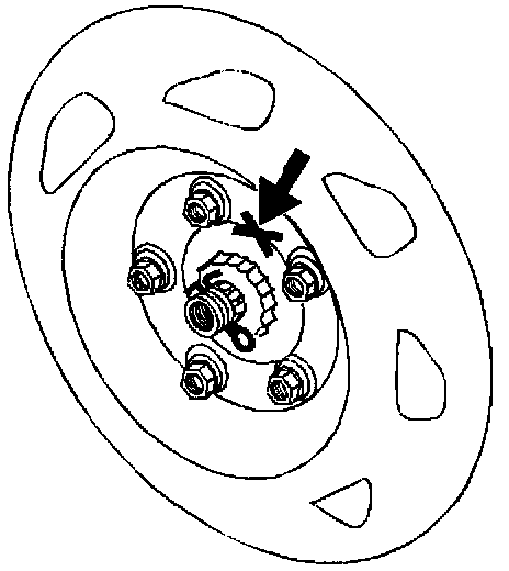 3. Mark the relationship of the tire and wheel assembly to the axle hub.