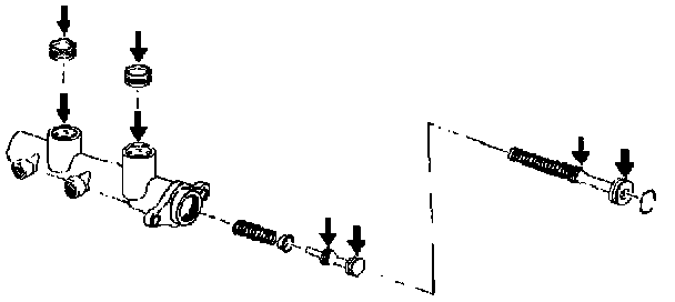 1. Lubricate the grommets, seals, and the cylinder bore with clean brake fluid.