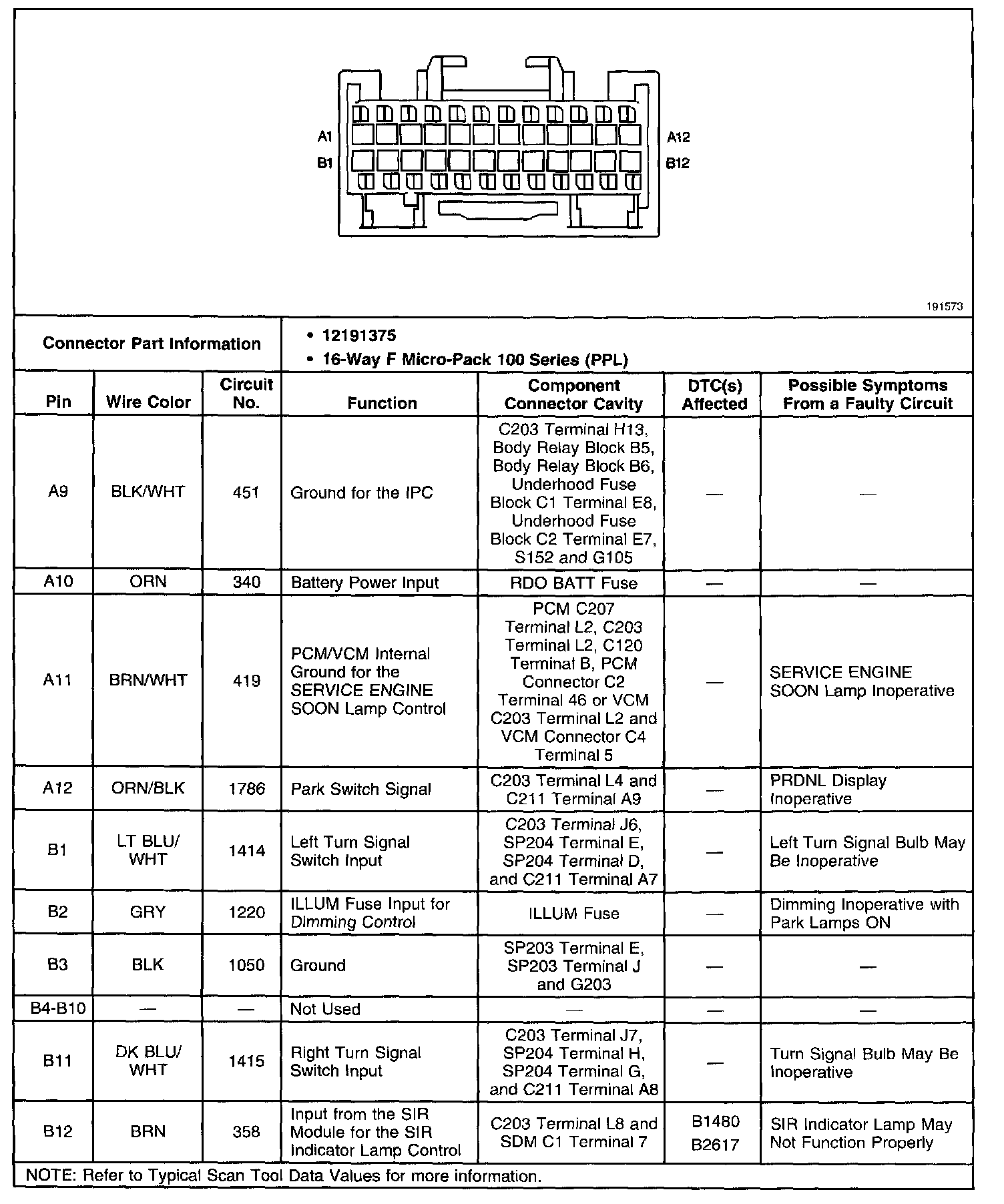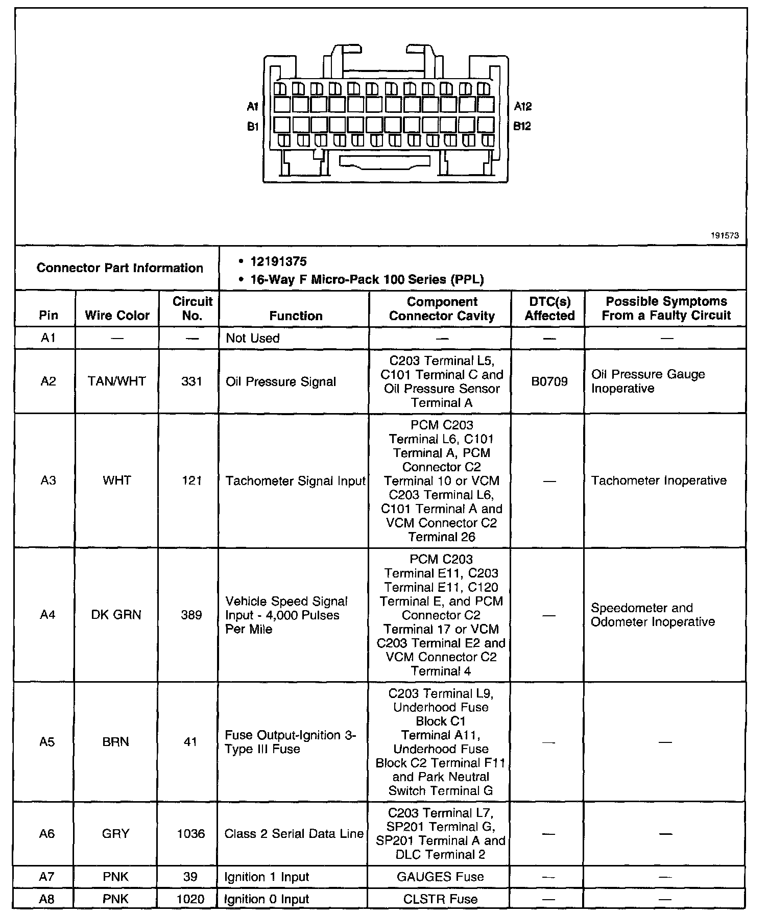 Instrument Cluster Connector: C1 (DTC) (Part 2 Of 2):