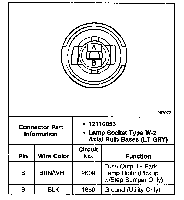 Rear License Plate Lamp, RH Connector (Pickup W/O Rear Step Bumper):