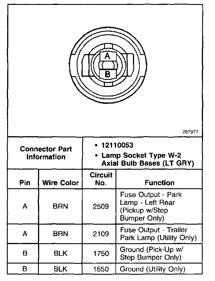 Rear License Plate Lamp, LH Connector (Utility And Pickup W/Step Bumper):