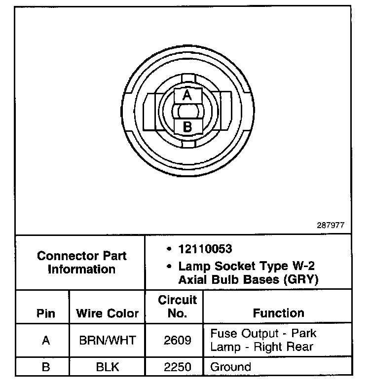 Side Marker Lamp, RH Rear Connector: