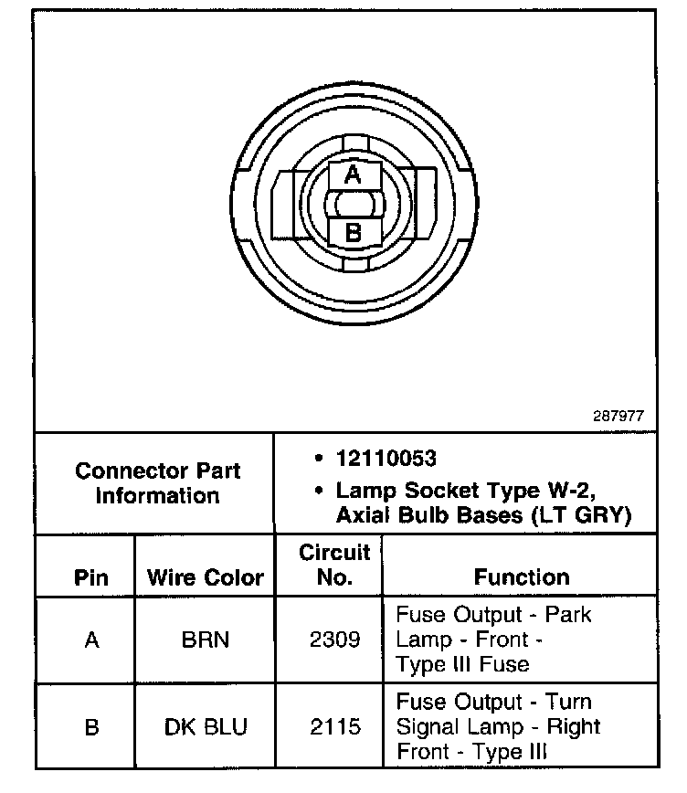 Side Marker Lamp, RH Connector (Front):