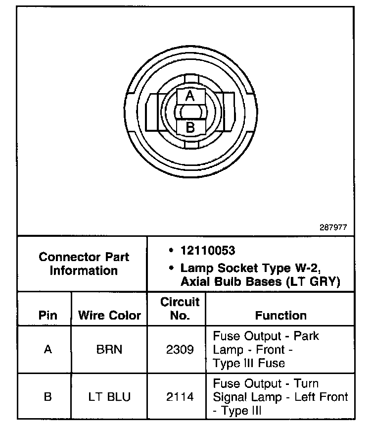 Side Marker Lamp, LH Connector (Front):