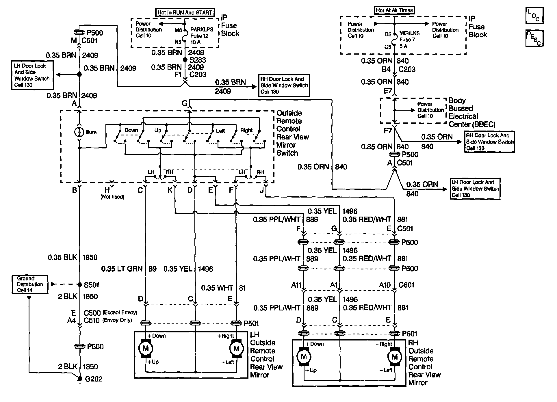 Outside Mirrors Schematics: Outside Remote Control Rear View Mirrors And Switch: