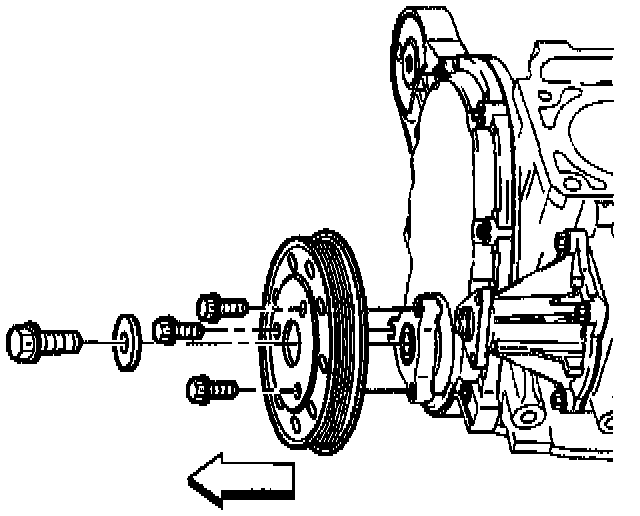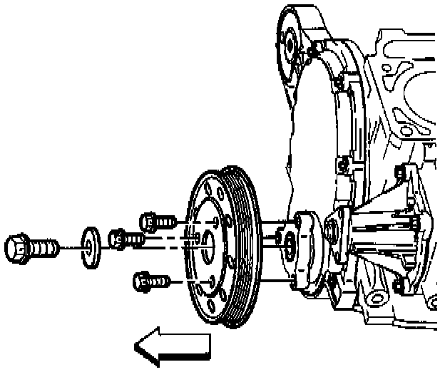 6. Remove the hub bolt and washer from the crankshaft pulley.