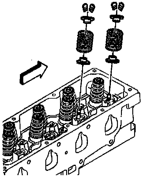 NOTICE: The LN2 Engine uses a unique valve spring seat and seal combination unit. Under no circumstances should this seal and seat unit be replaced with a different type of seal. Use care to ensure that the valve stem seal and spring seat are not damaged during installation. Do not use excessive force or a hammer to install the seal on the guide. The seal will go on if straight and properly lubricated using hand pressure only.