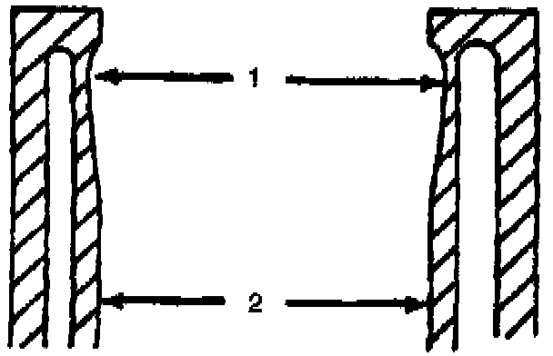 2. Measure dimension (1) at 13 mm (1/2 inch) below the head gasket surface. Measure dimension (2) at 100 mm (4 inch) below the head gasket surface.