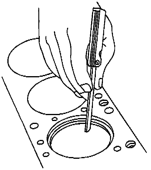 6.1. Place the piston ring in the area of the bore where the piston ring will travel (approximately 25 mm or 1 inch down from the deck surface). Be sure the ring is square with the cylinder bore by positioning the ring with the piston head.