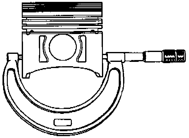 10.1. Using an outside micrometer, measure the width of the piston 11 mm (0.437 inch) above the bottom of the piston skirt at the thrust surface perpendicular to the centerline of the piston pin.