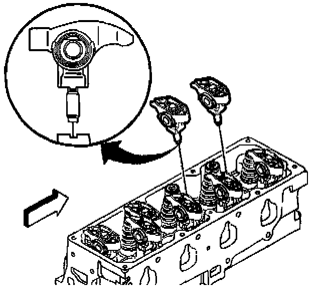 3. Ensure that the locating tab on the rocker pivot is properly aligned with the notch in the cylinder head.
