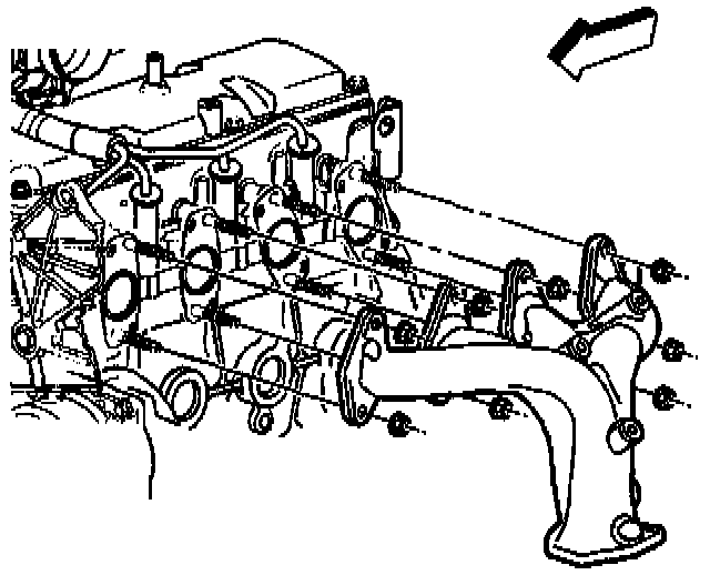 12. Remove the exhaust manifold and the gasket.