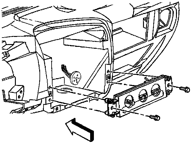 3. Depress the control assembly retaining tabs and remove the control assembly from the instrument panel.