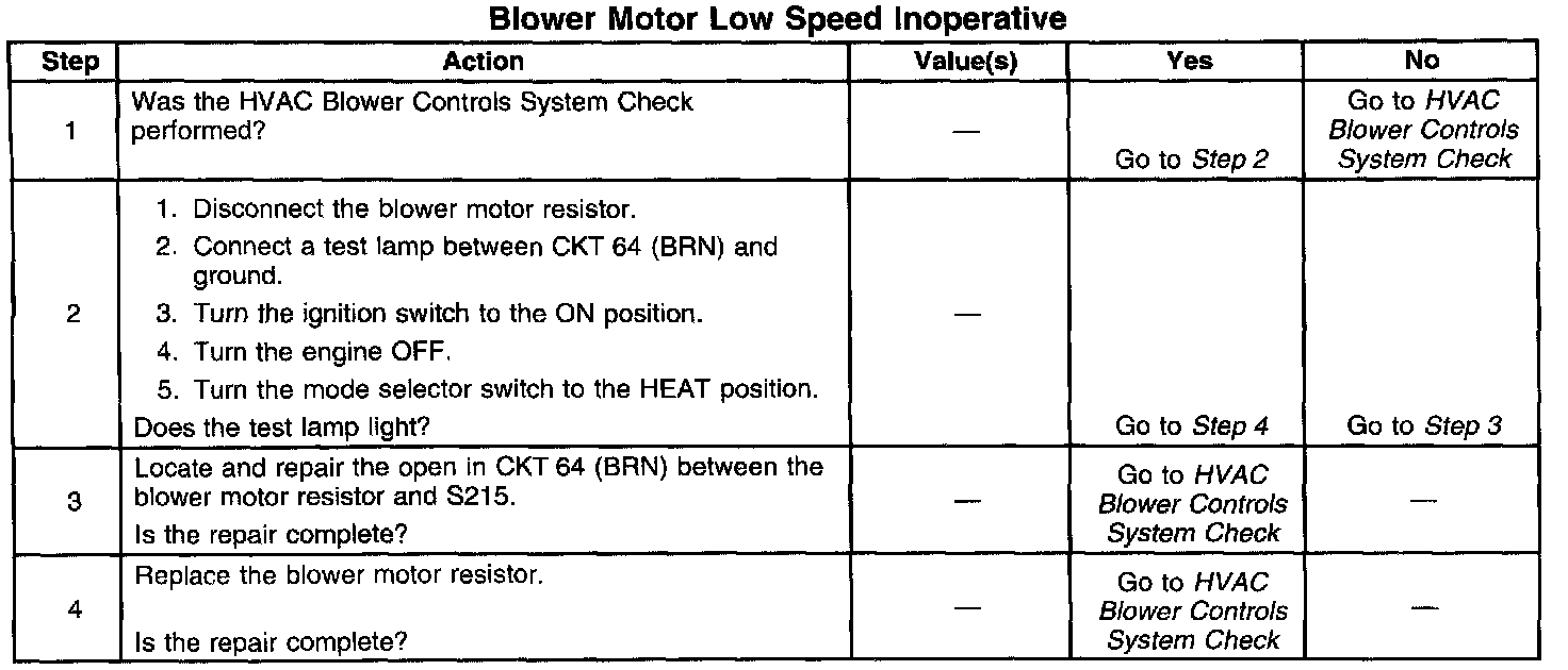Blower Motor Low Speed Inoperative