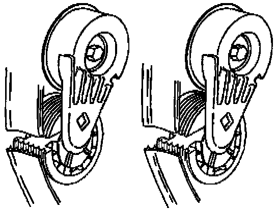 3. When installing a used drive belt, observe the indicator on the tensioner.
