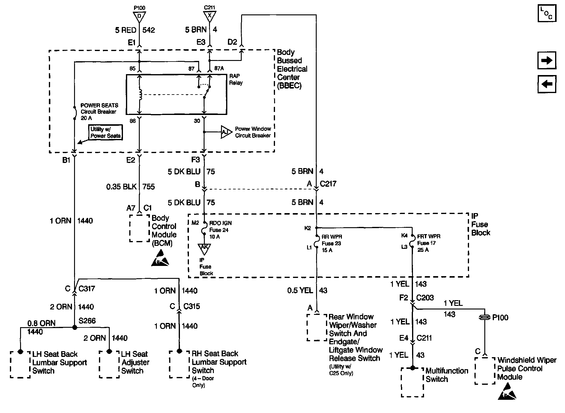 Power Distribution Schematics: RDO IGN, RR WPR And FRT WPR Fuses: