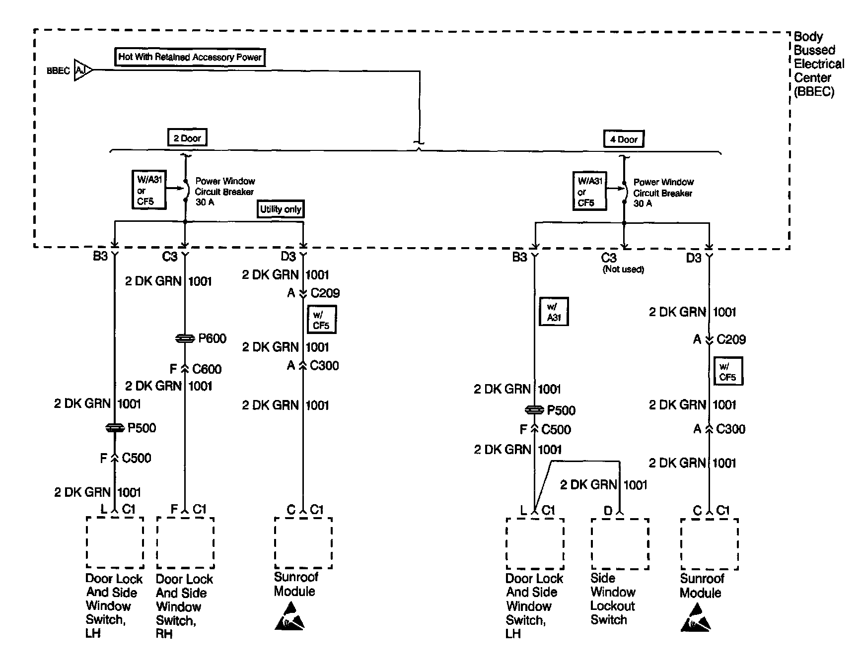 Power Distribution Schematics: BBEC, Power Window Circuit Breaker: