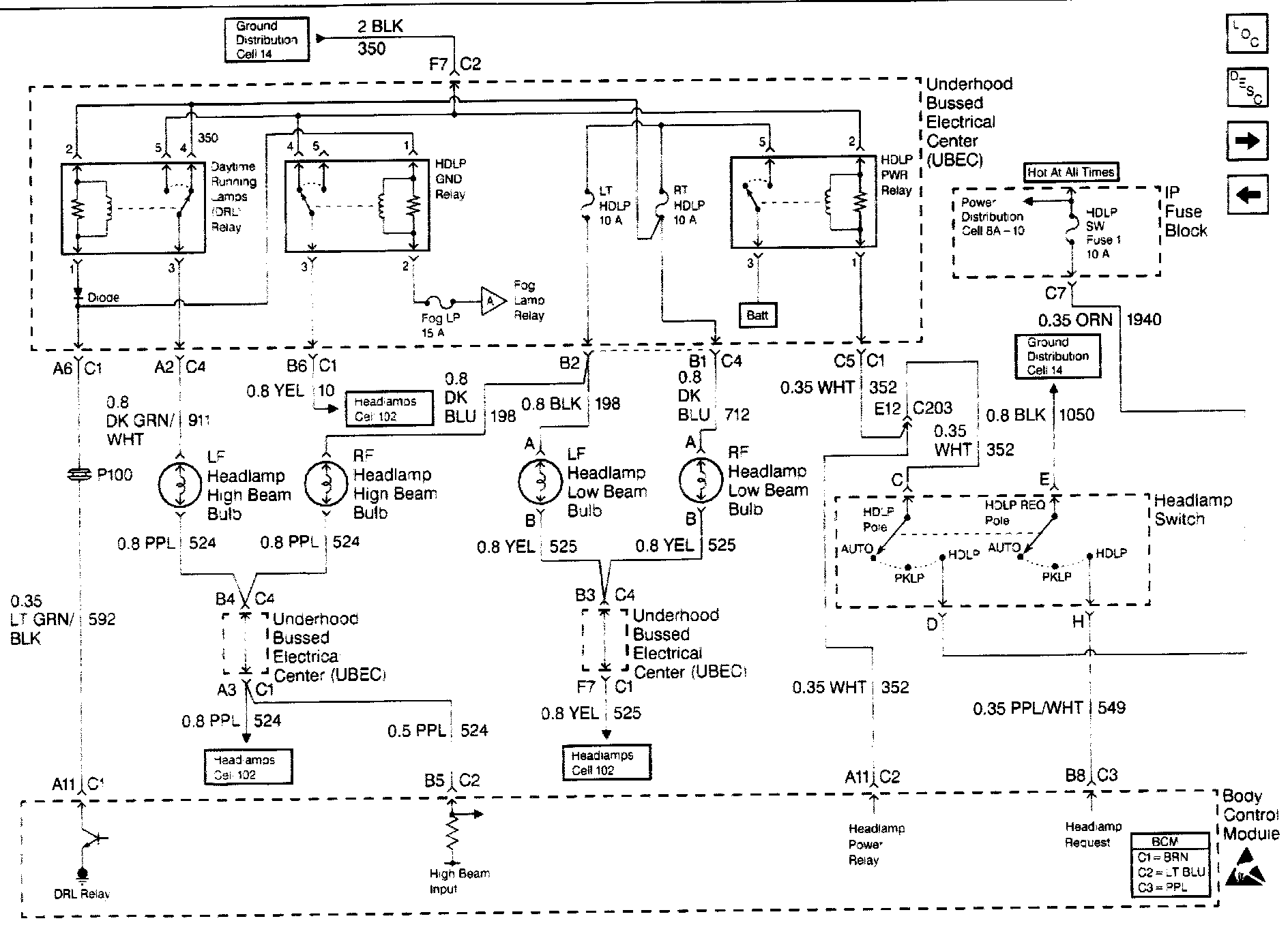 Body Control Module Schematics: Headlamp Switch And Headlamp Bulbs: