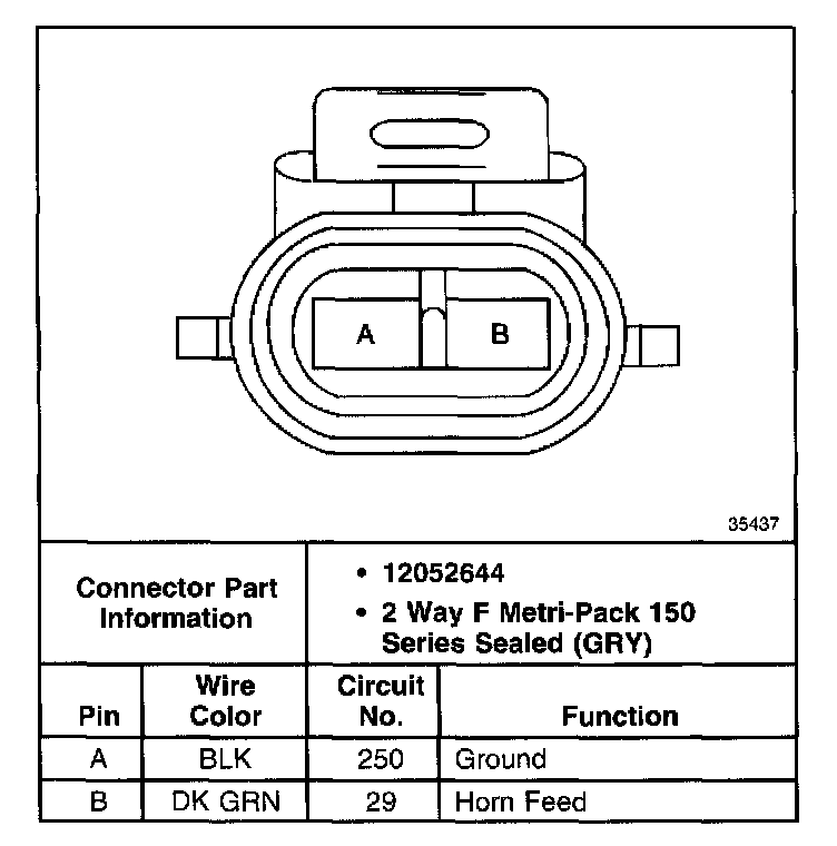Connector end views show the cavity or terminal locations for all the related 2-pin or larger connectors shown in the system schematic(s). The drawings show the connector's face as seen after the harness connector has been disconnected from a component or mating connector. Unused cavities are left blank in the table.