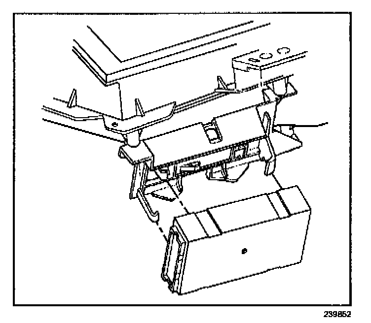 6. Apply pressure on the left side of the BCM in order to move the module toward the mounting bracket base. Snap the BCM into place. Ensure that both of the snap retainers are fully seated and holding the module.