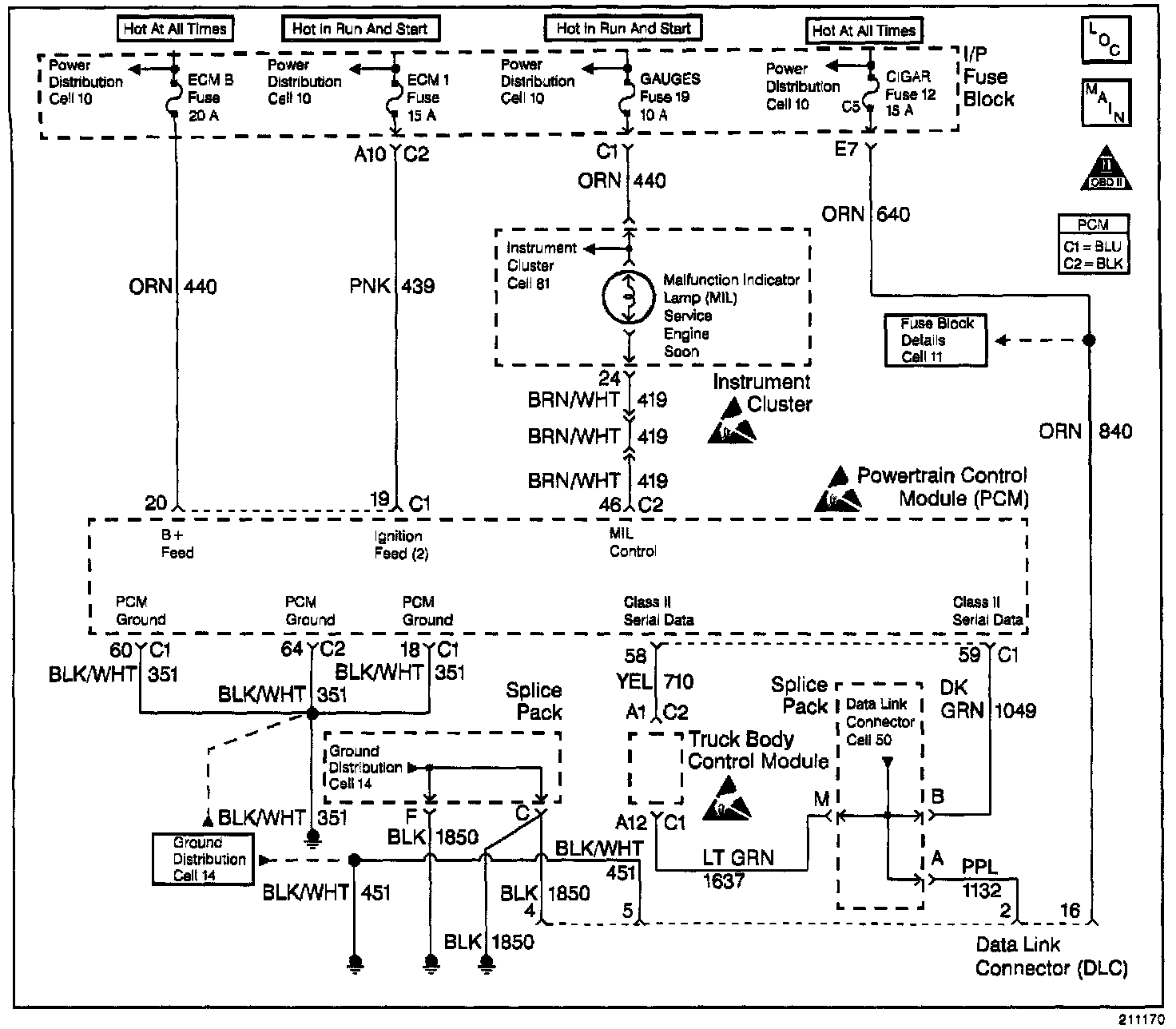 Battery power and ground is supplied to the scan tool through the DLC. The Class 2 serial data circuit to the DLC allows the PCM to communicate with the scan tool. The Class 2 serial data circuit is also used to communicate with the Electronic Brake Control Module (EBCM).