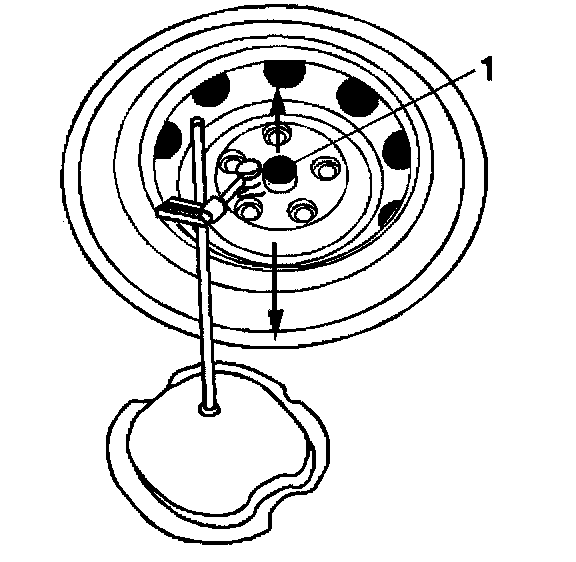 6. For S4WD vehicles, place the vehicle on jack stands. Place a dial indicator (1) against the spindle in order to show vertical movement.
