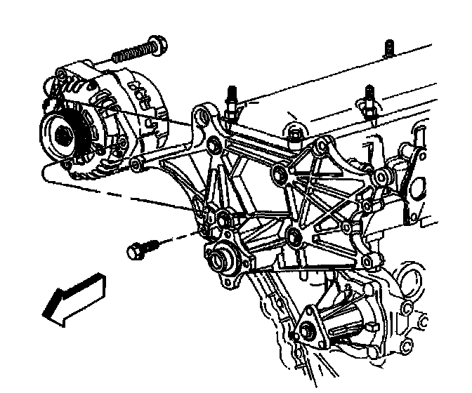 - Remove the generator brace to the engine block bolt.