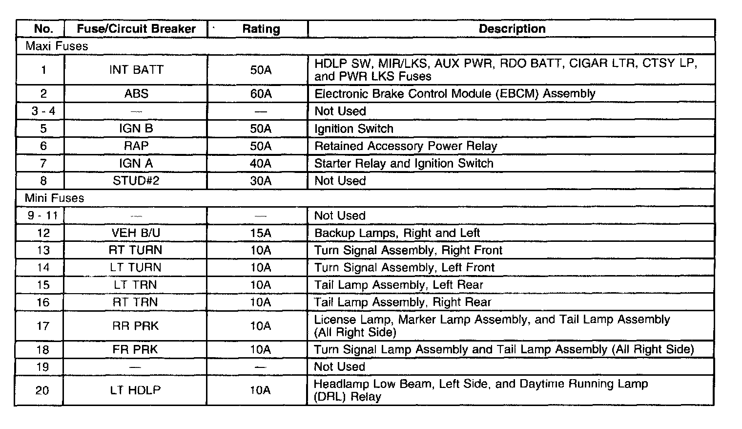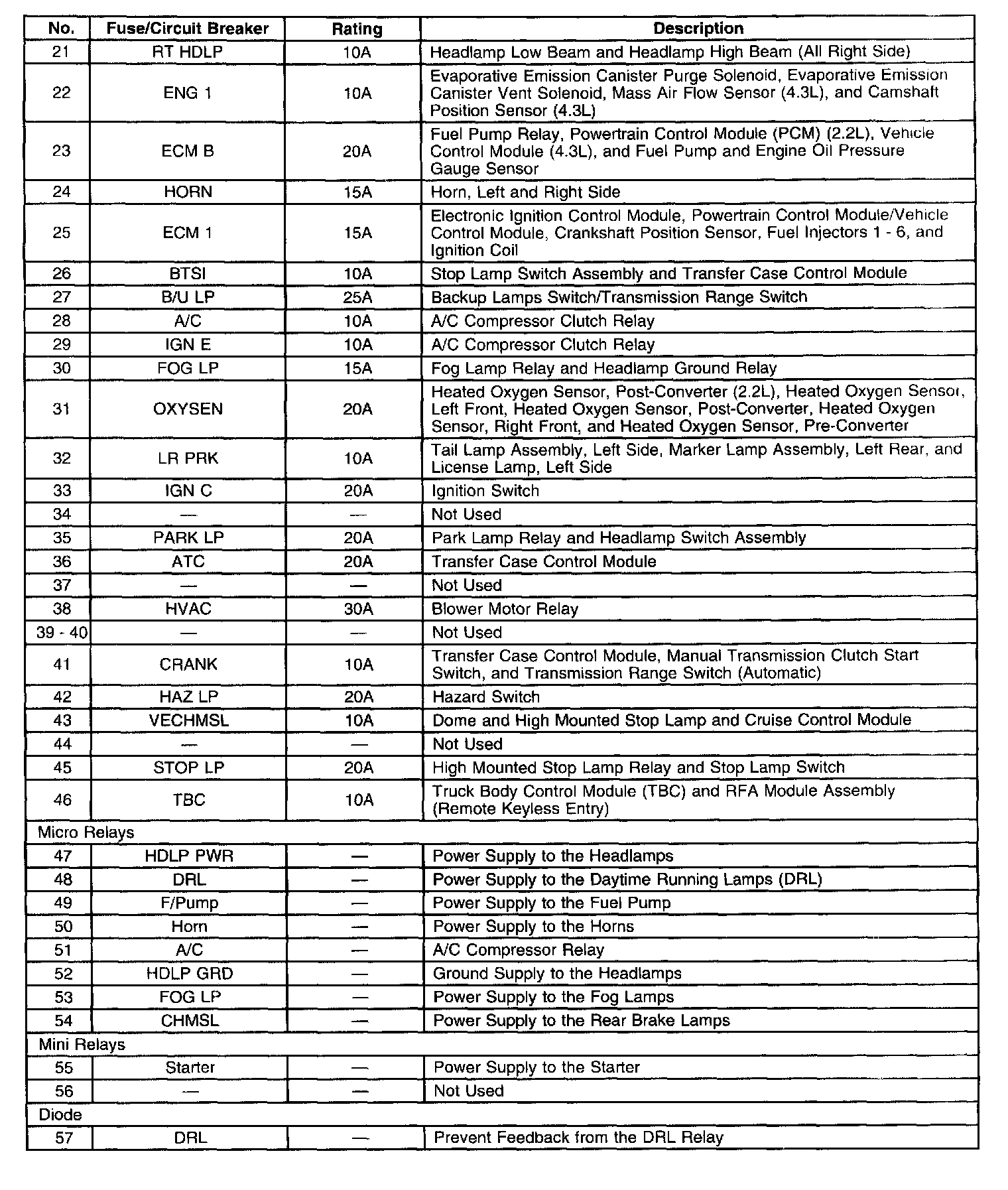 S10/T10 P/U 2WD L4-2.2L VIN 4