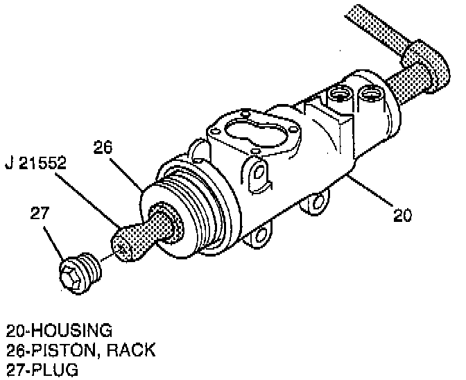 - The rack piston (26) will be forced onto J 21552 and hold the rack piston balls (25) in place.