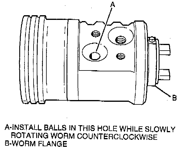 - Fully seat worm shaft (13) to rack piston (263 and align worm shaft spiral groove with rack piston ball return guide hole.