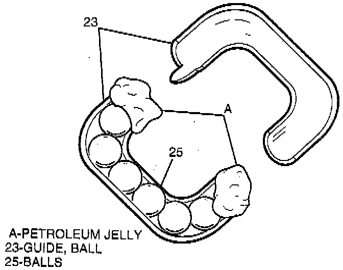 4. Remaining rack piston balls (25) to ball guide (23) using grease at each end to retain balls (25).