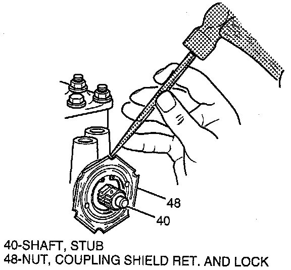 5. Install coupling shield retainer and lock nut (48), and using a drift in a notch, tighten securely.