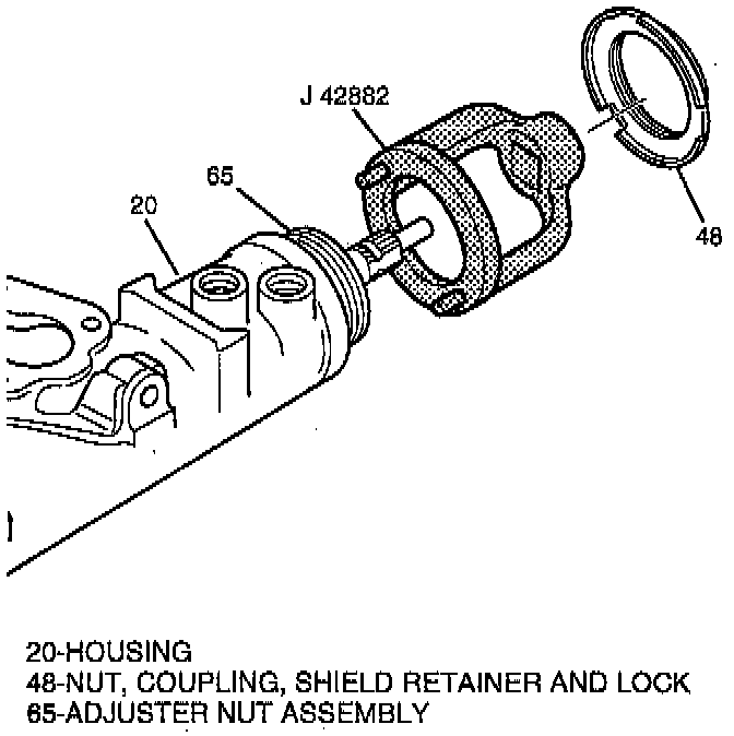 3. Adjuster nut assembly (65) to housing (20) using J 42882.