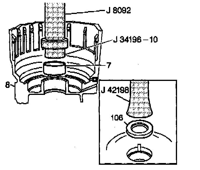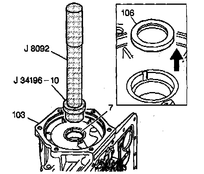 1. Install a case bushing (7) using J 8092 and J 34196.