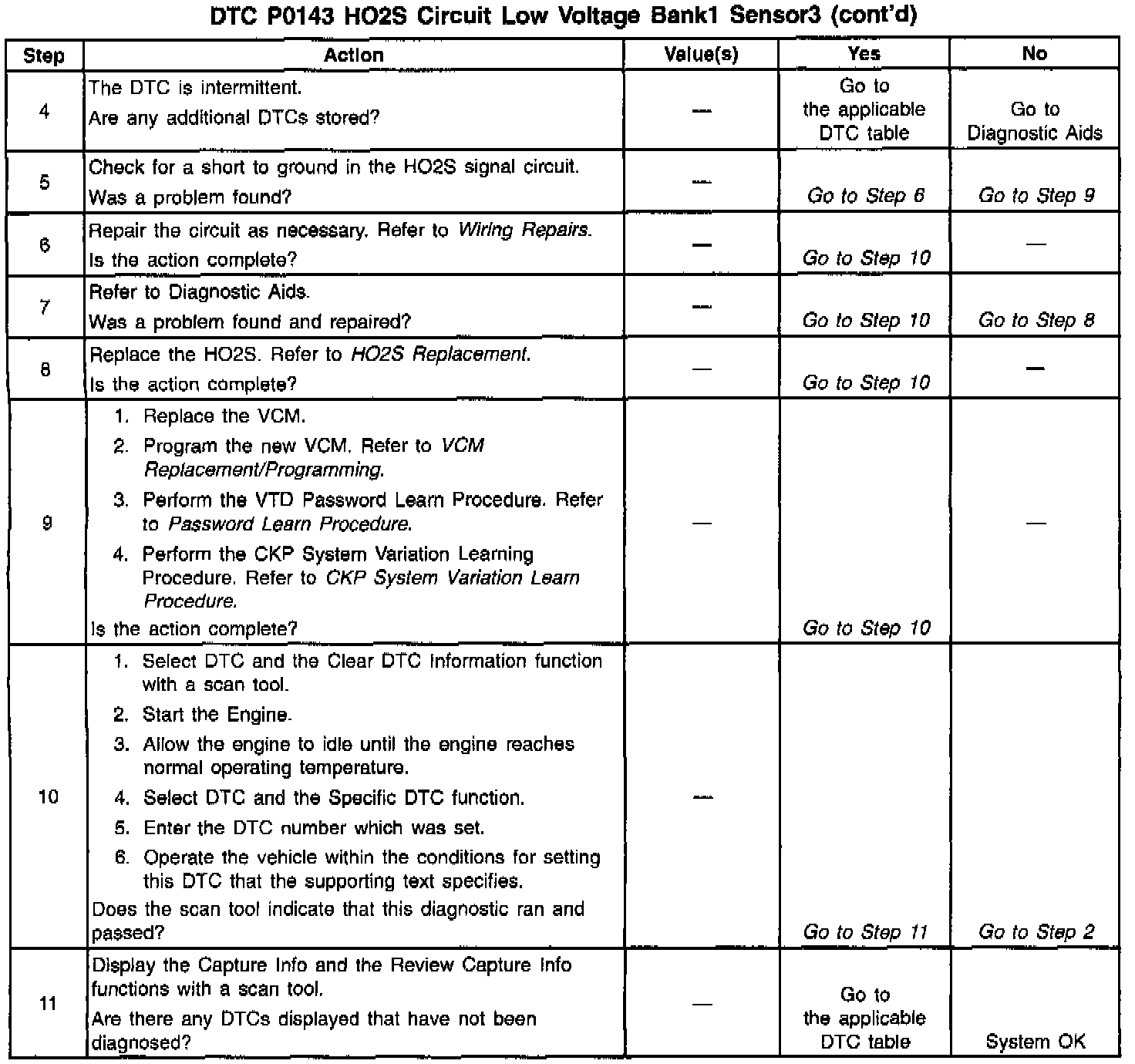 The HO2S heater provides for a faster sensor warm-up which allows the sensor to become active in a shorter period of time. The sensor will also remain active during a long extended idle. The DTC P0143 determines if the HO2S or circuit is shorted low by checking for a lean condition during a steady throttle and power enrichment (PE).