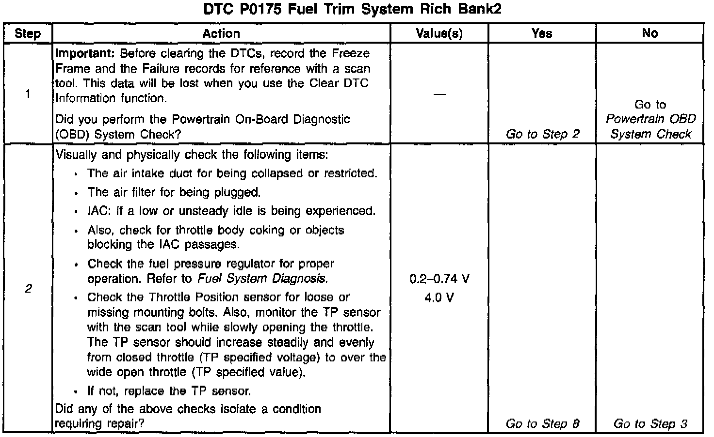 2. Visually and physically checking items which may cause a rich condition may determine the cause of the DTC P0175 being set.