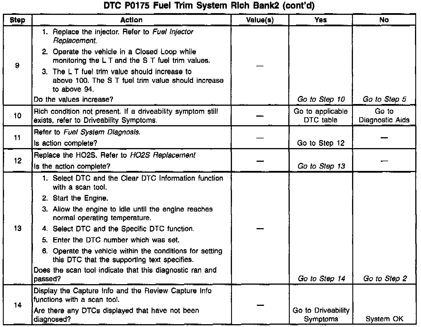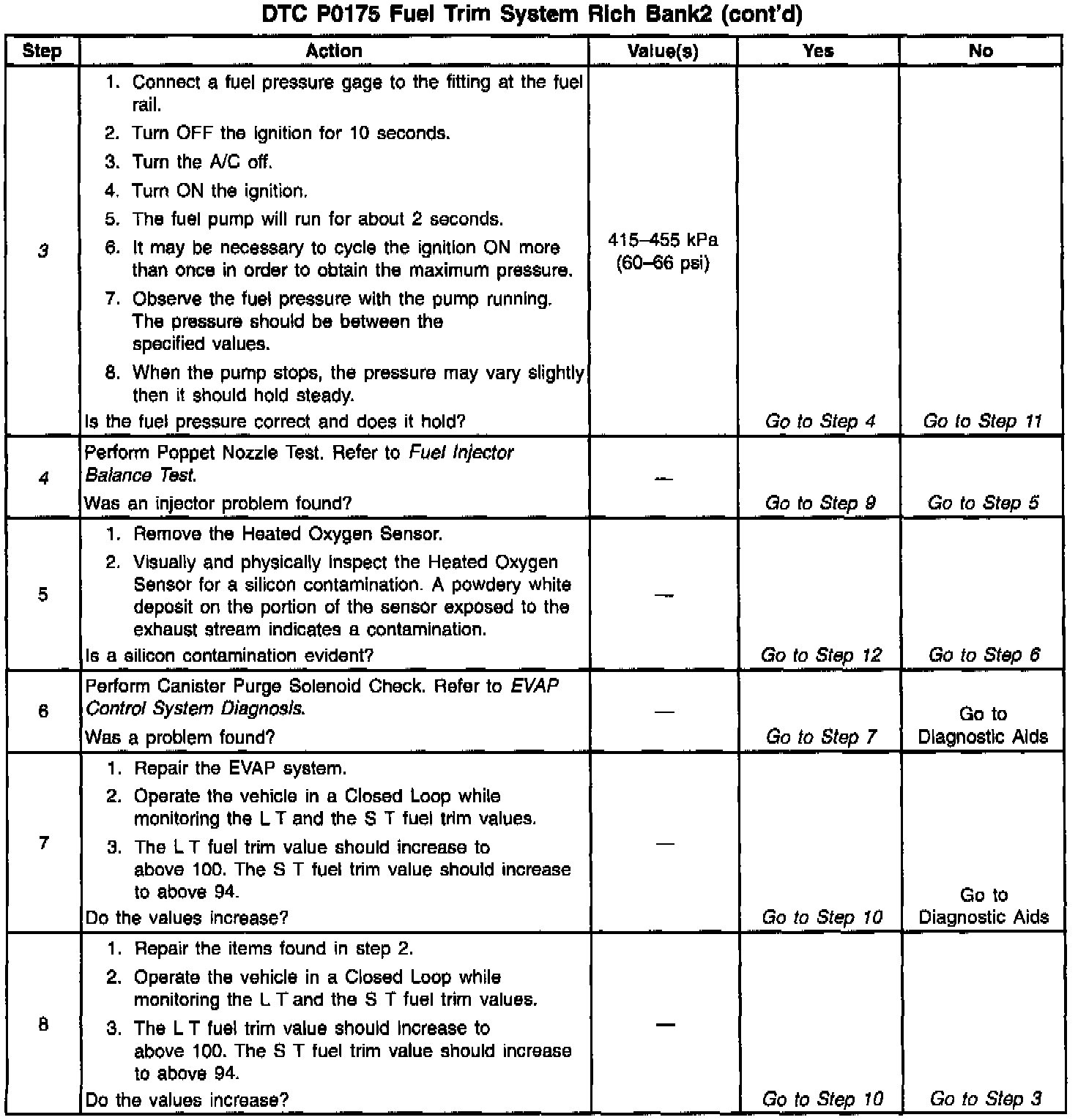 If using the diagnostic tables does not isolate the problem, try monitoring the L.T. fuel trim and fuel trim cell while operating the vehicle under various loads. This may isolate the condition which caused the setting of the current DTC.