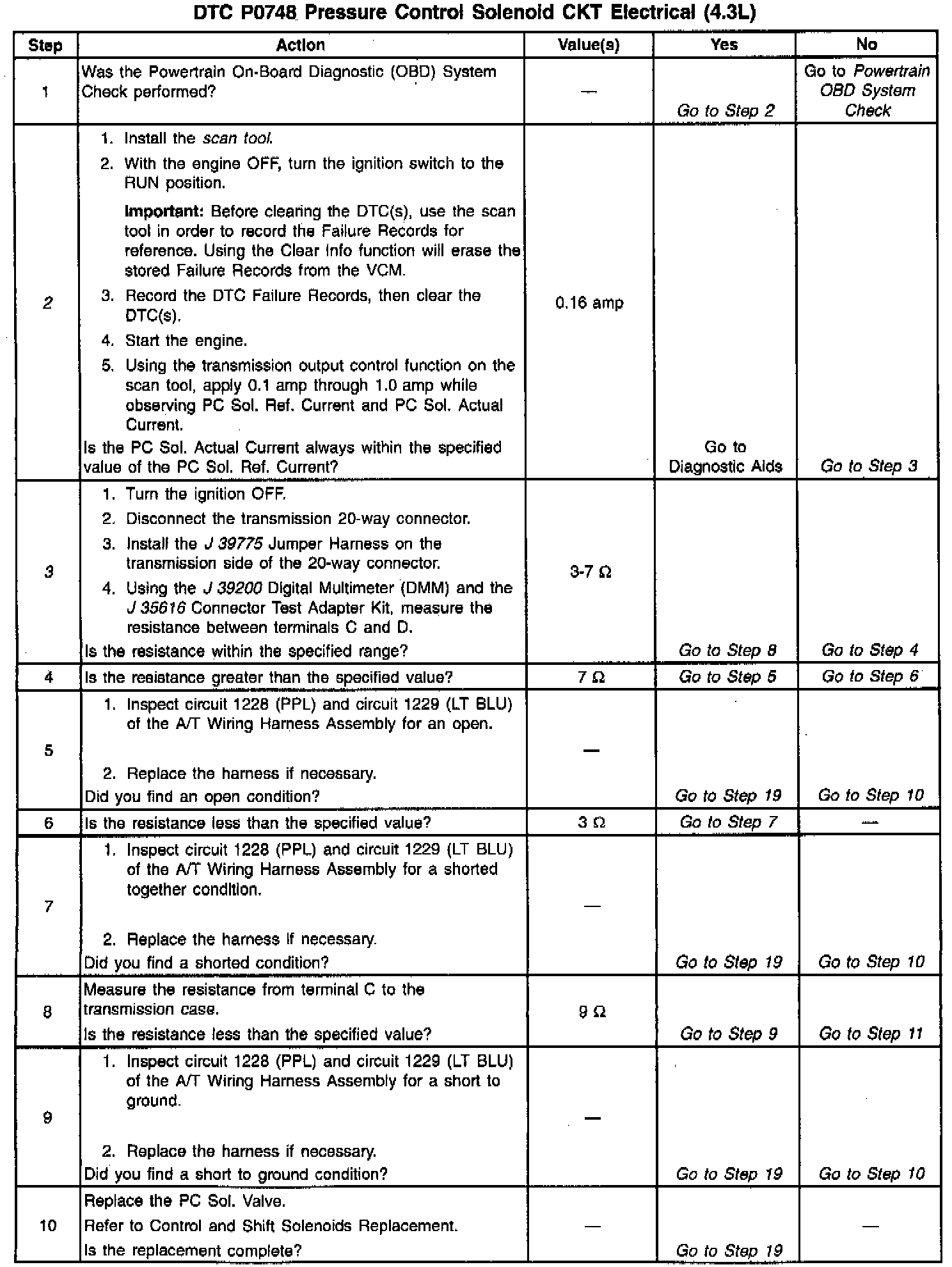 When the VCM detects a continuous open or short to ground in the PC Sol. Valve circuit or the PC Sol. Valve, then DTC P0748 sets. DTC P0748 is a type D DTC.