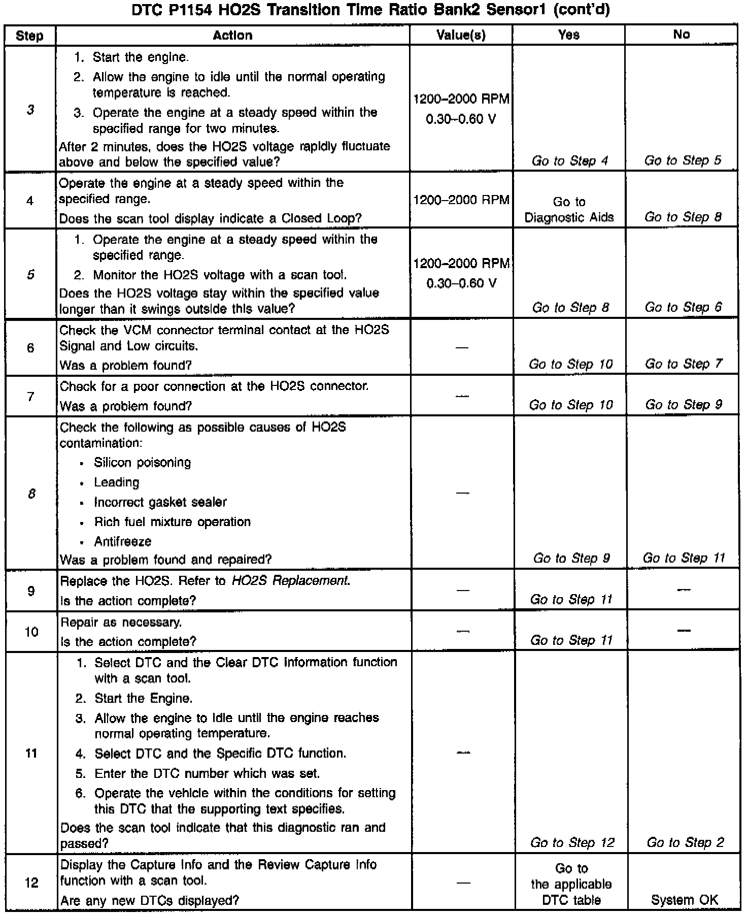 5. This step checks to see if the Oxygen sensor voltage is swinging between rich and lean very slowly or not at all.