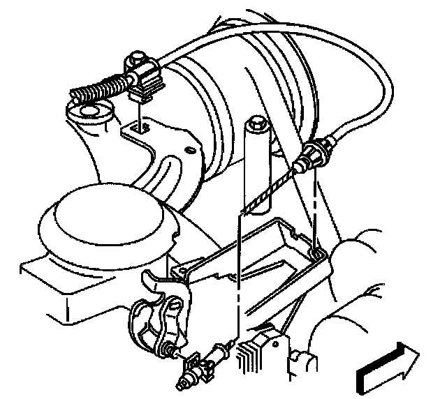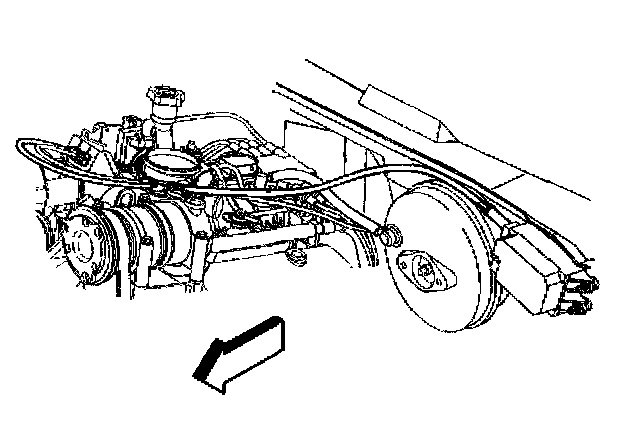 6. Route the cable over the brake booster, along the left side rocker cover under the preplenum air inlet tube, and above the radiator inlet hose.