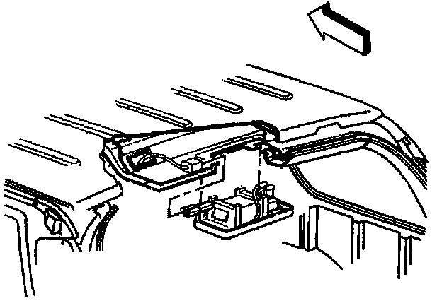 4. Remove the dome lamp assembly from the roof rear header garnish molding.