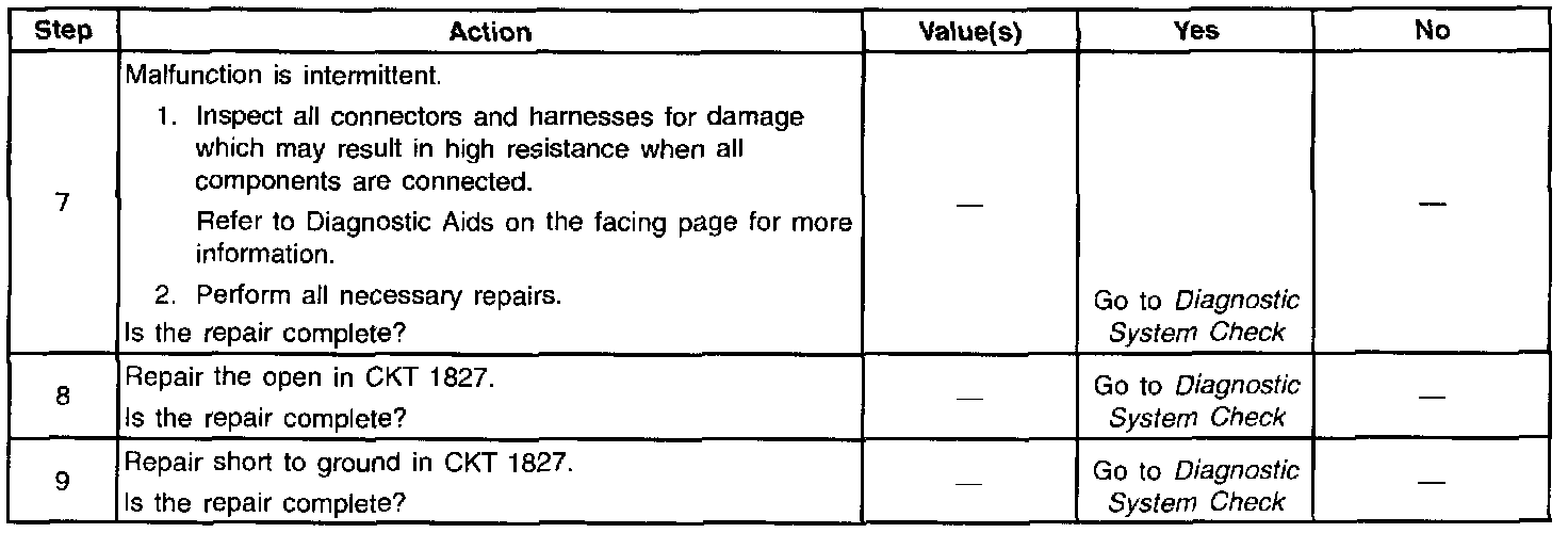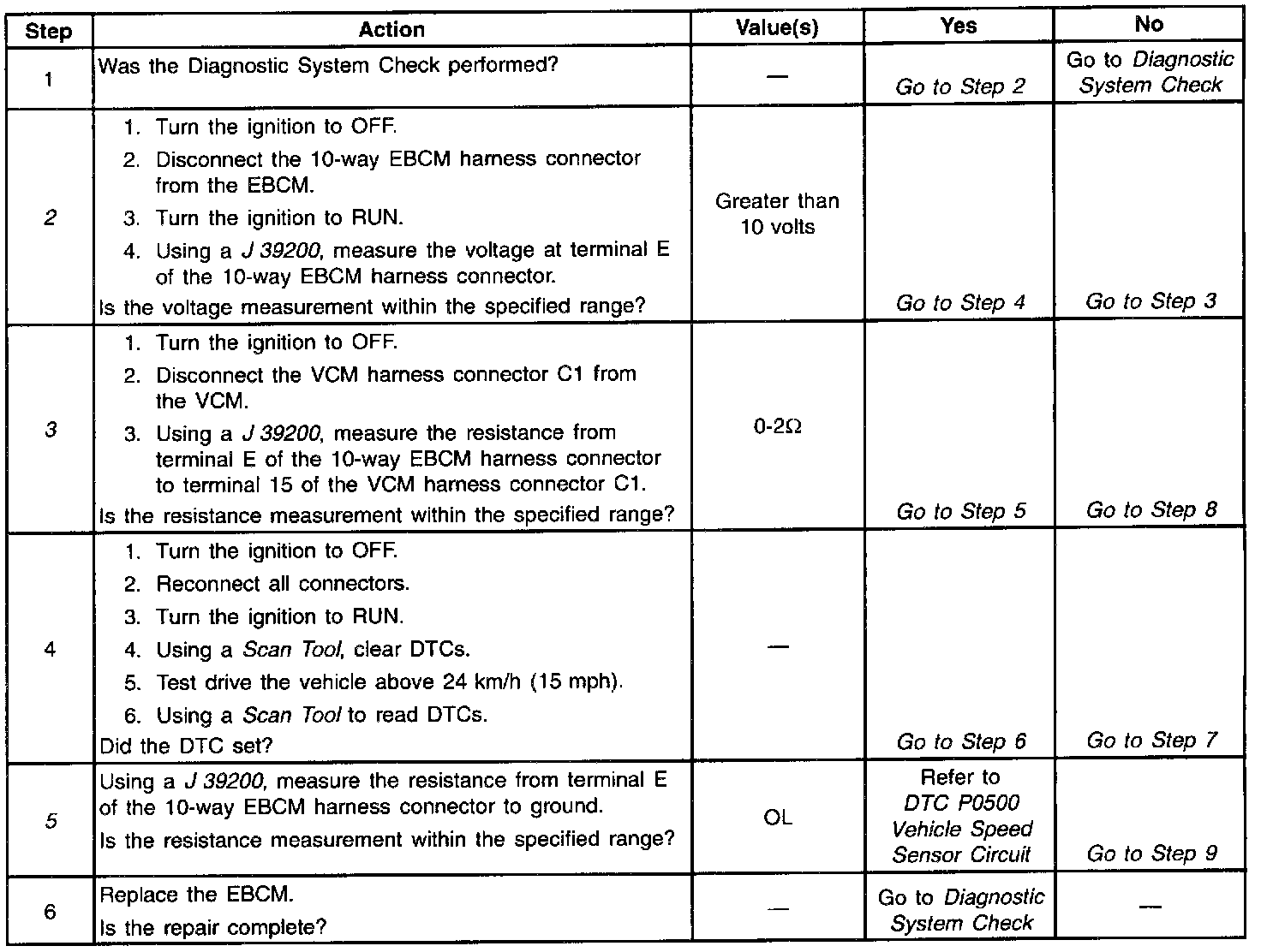 This DTC can be set by a malfunction in the VSS, or a fault in CKT 821, 822 or 1827. In addition, any of the following conditions may cause an intermittent malfunction: