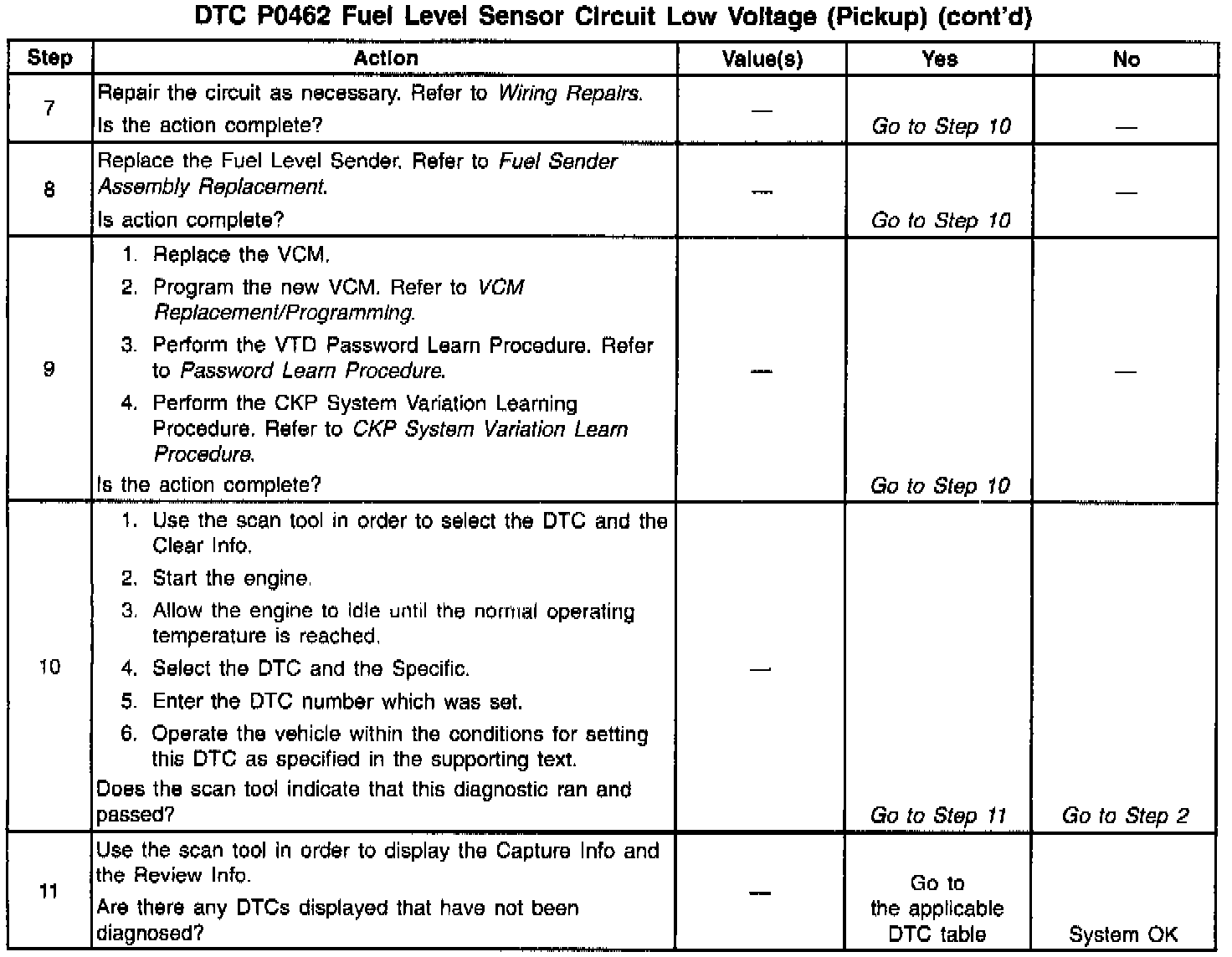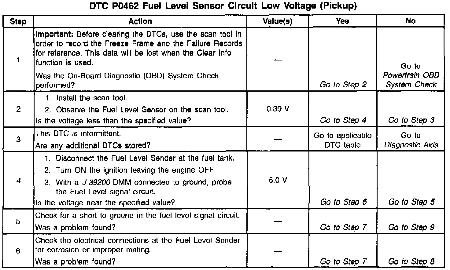 ^ The fuel level signal voltage is less than 0.39 volts for a period greater than 20 seconds.