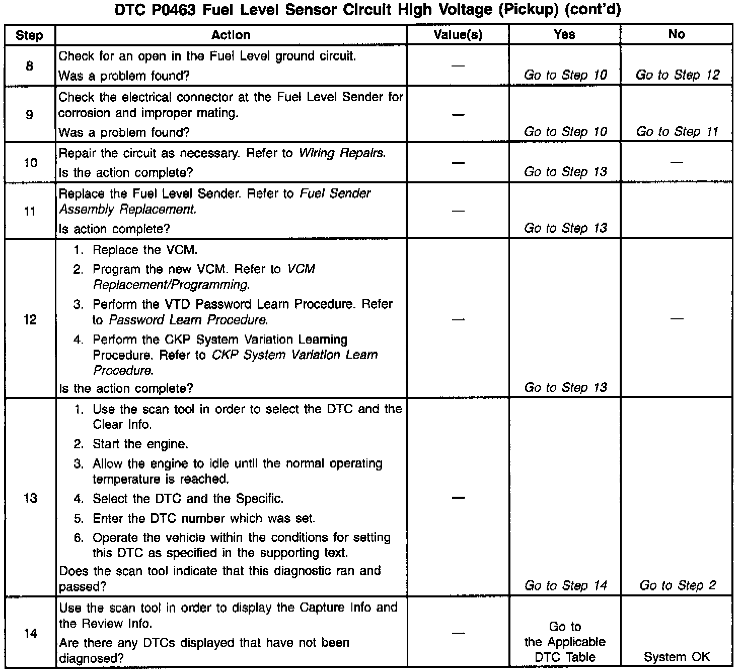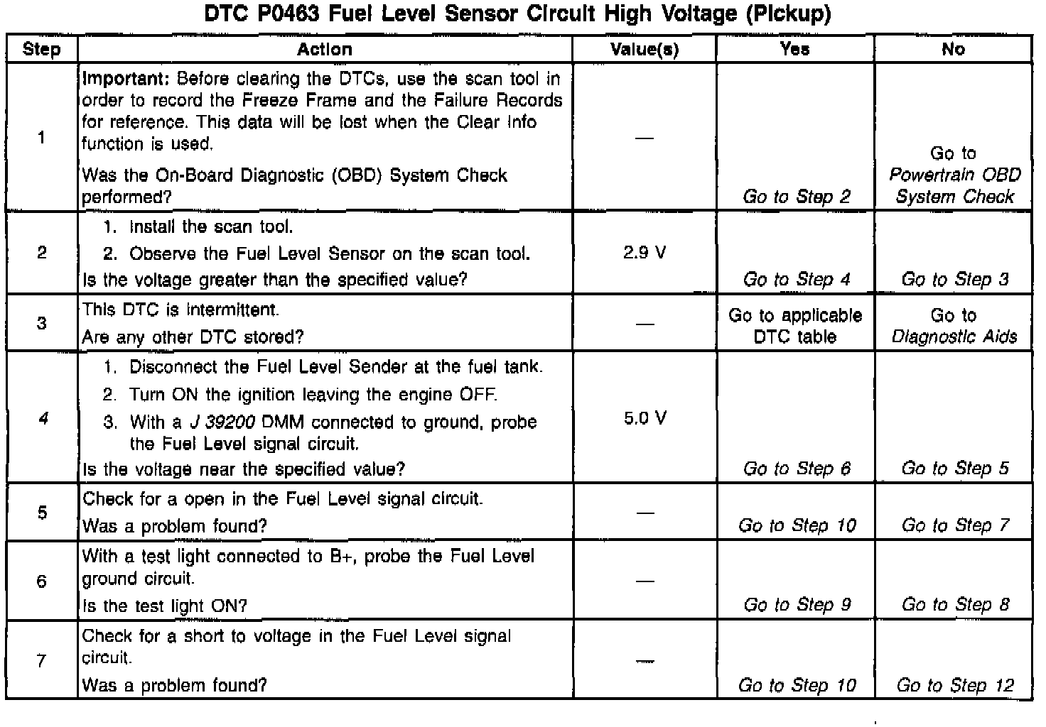 The numbers below refer to the step numbers in the diagnostic table.