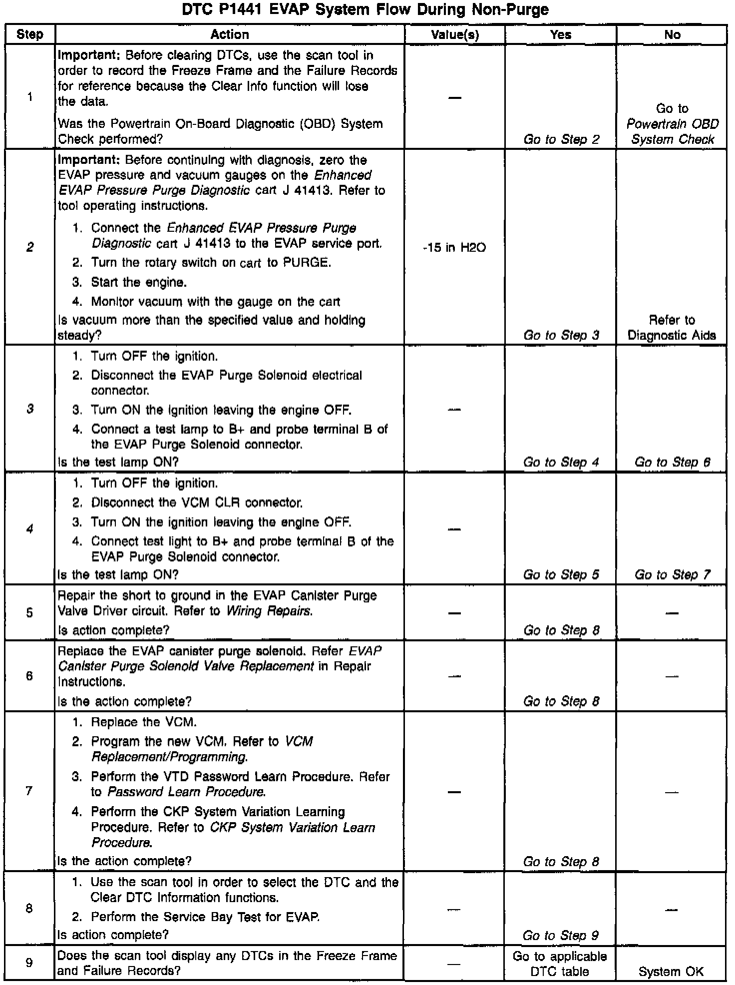 If any of these conditions are present, a DTC P1441 sets.