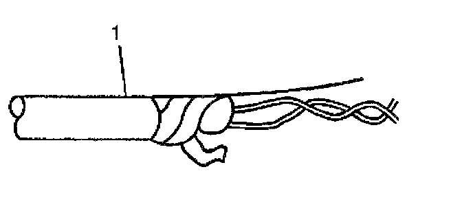 1. Remove the outer jacket (1). Use care not to cut into the drain wire of the mylar tape.