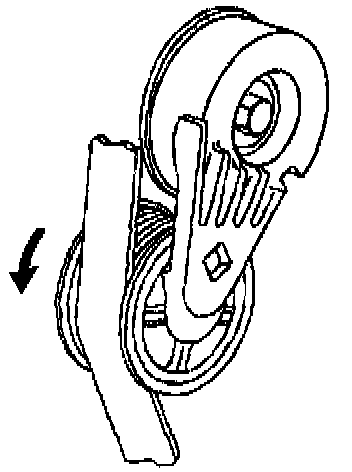 REMOVAL PROCEDURE1. Install a 3/8 inch drive wrench on the tensioner arm and rotate the arm counterclockwise.