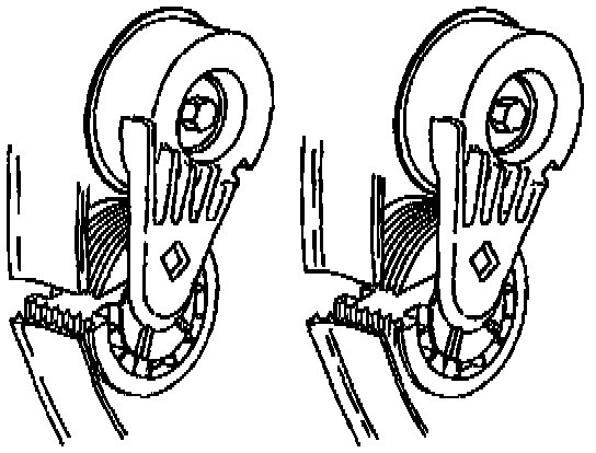 3. When installing a used drive belt, observe the indicator on the tensioner.