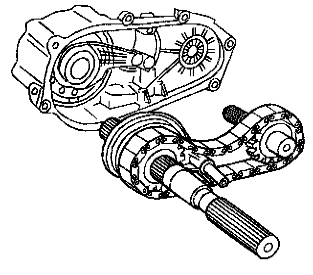 25.1. Install the chain over the mainshaft onto the drive gear. Install the mainshaft assembly, the chain, and the front output shaft as an assembly.