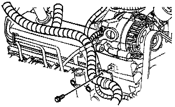 4. Unfasten the heater hose retainer above the valve rocker arm cover.